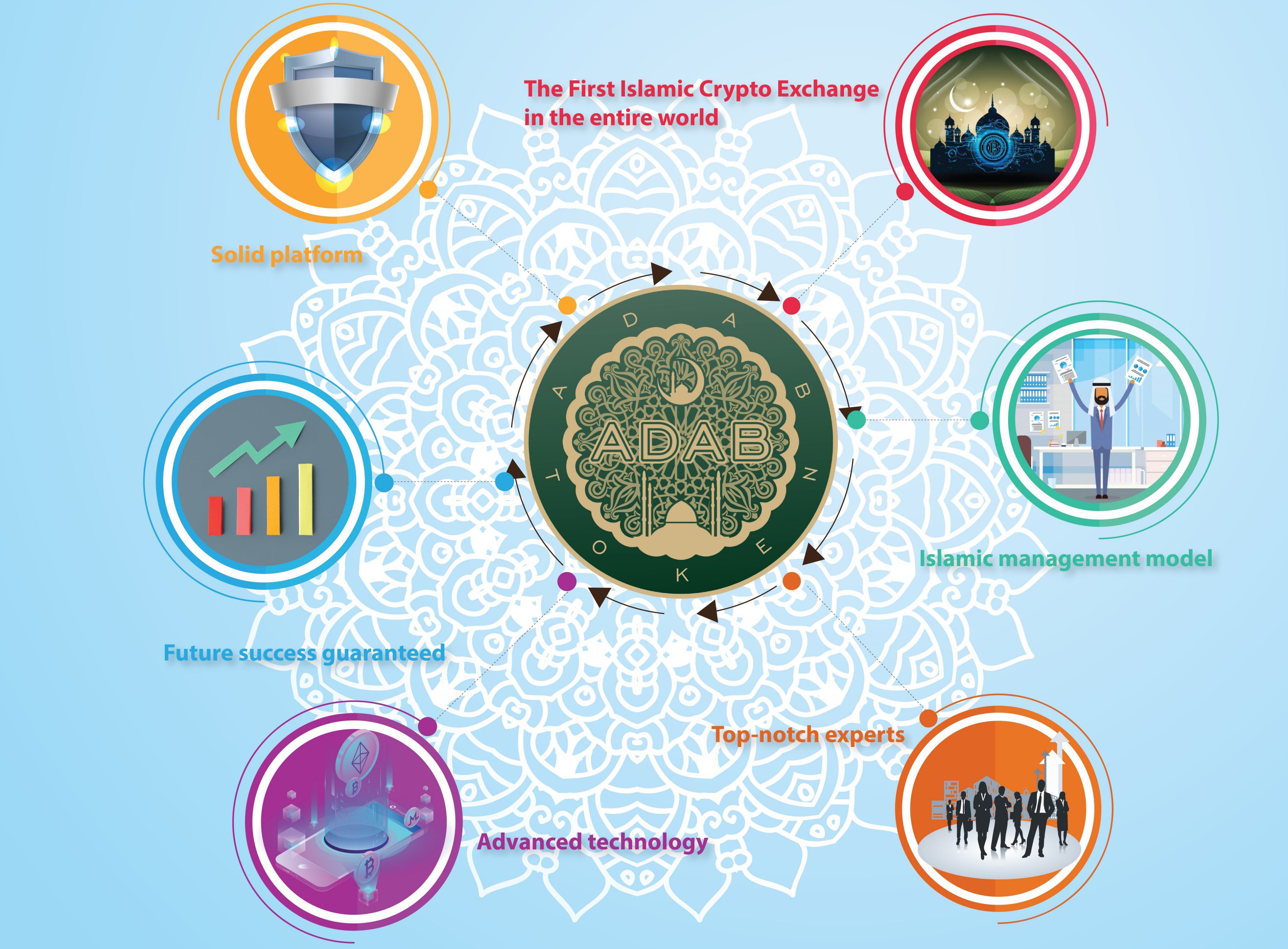 Members of the ADAB Solutions team understand that the cryptocurrency market now needs to introduce moral and ethnic values. Therefore, the ADAB Solutions team sets the main goal to solve the problem of reconciling cryptocurrency assets with high moral and cultural values. First of all, projects related to the gambling business, the provision of immoral services, financial pyramids, usury and the production of tobacco and alcohol will be eliminated. To check and control the activities of various projects and platforms in the administration of the exchange, a Sharia Advisory Council will be created, which will be represented by top scientists in the field of Islamic finance.