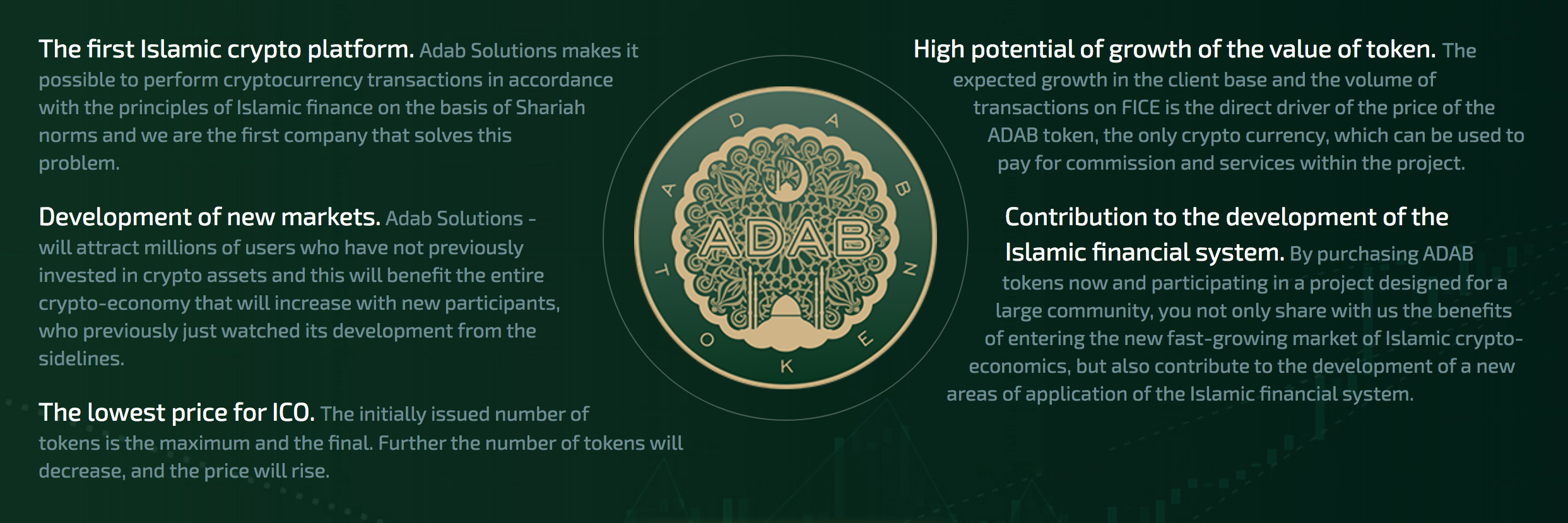 Seeing the small involvement of Muslims in cryptomeria, the ADAB Solutions project team is going to solve this problem. The work of the exchange is aimed primarily at attracting Muslims into the world of cryptocurrency and Blockchain. And this will be done primarily due to the implementation of the moral principles of the Muslim world. The reason for this is easily explained: now, unfortunately, a lot of fraudulent, or projects that are contrary to the morality of projects and blockchain platforms have divorced.